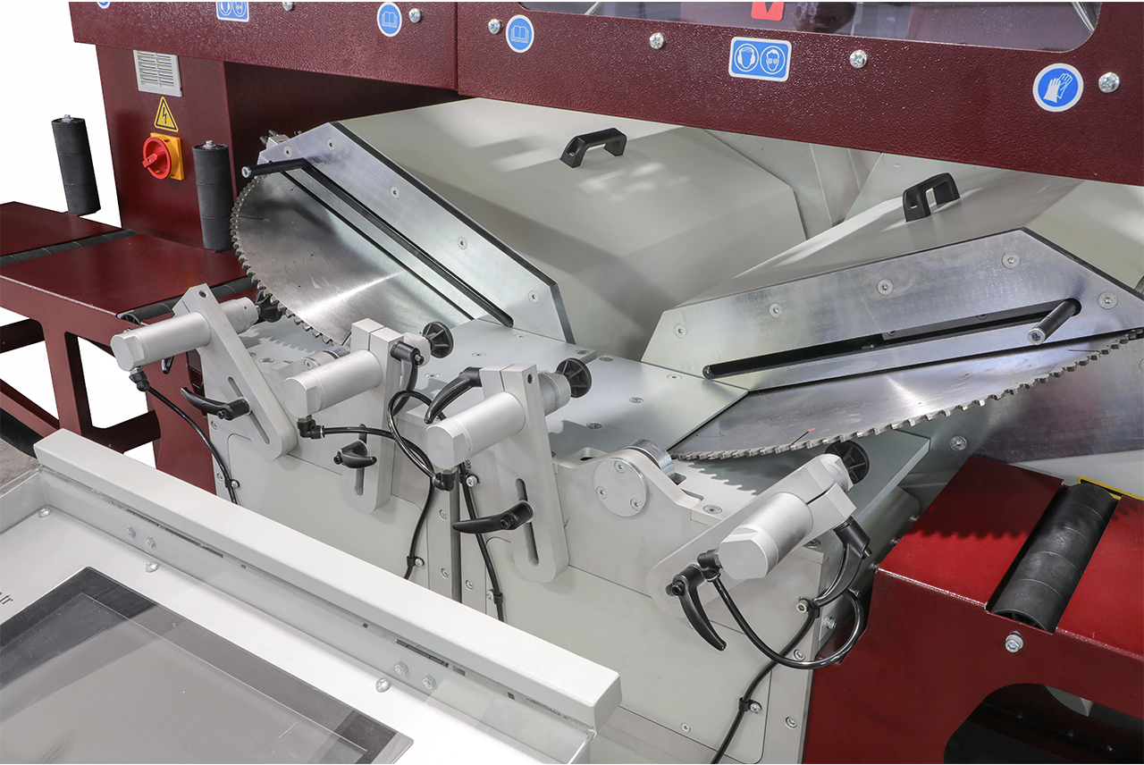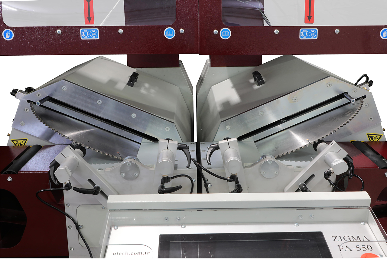 Zigma-06 FA is a heavy duty full automatic double head CNC miter saw equipped with 22″ (550 mm) carbide tipped saw blade, and designed for straight and miter cut of aluminum, vinyl profiles and wood.